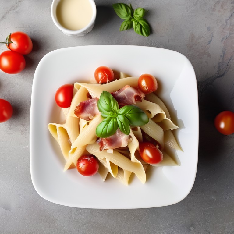Creamy White Chocolate Pasta with Tomato and Bacon
