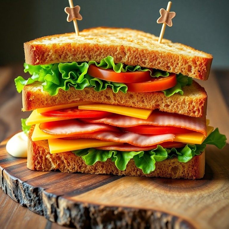 Klassisches Club-Sandwich mit geräuchertem Schinken und Cheddar