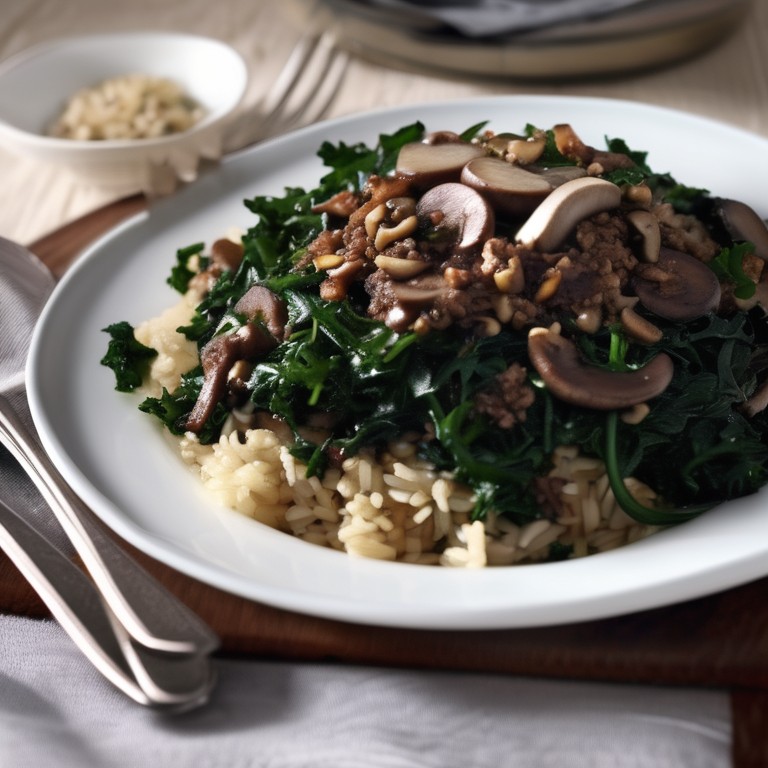 - Sautéed Lean Mince with Garlic Kale and Mushroom Rice