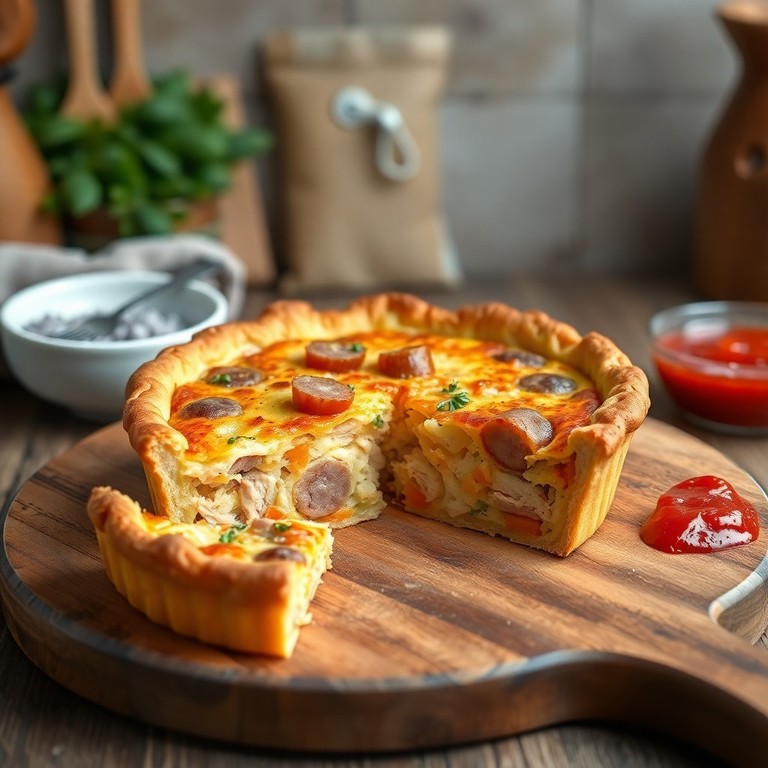 Quiche de Frango e Salsicha com Massa Crocante