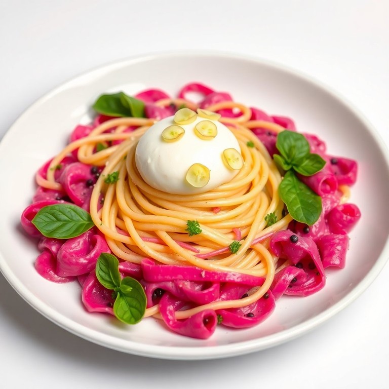 Pasta de Remolacha con Espuma de Queso de Cabra