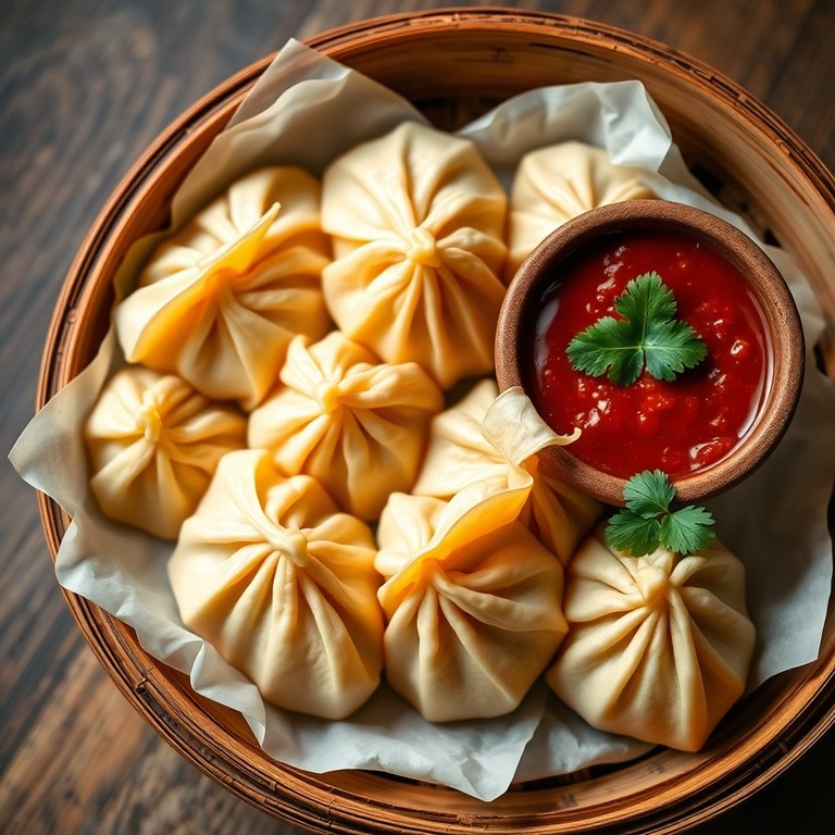 Authentic Steamed Chicken Momo with Spicy Tomato Chutney