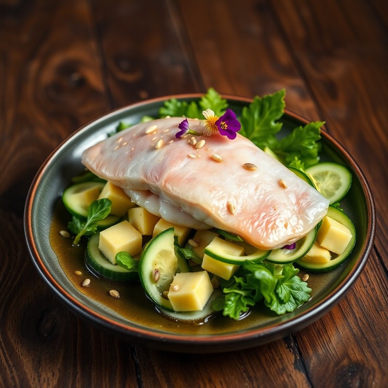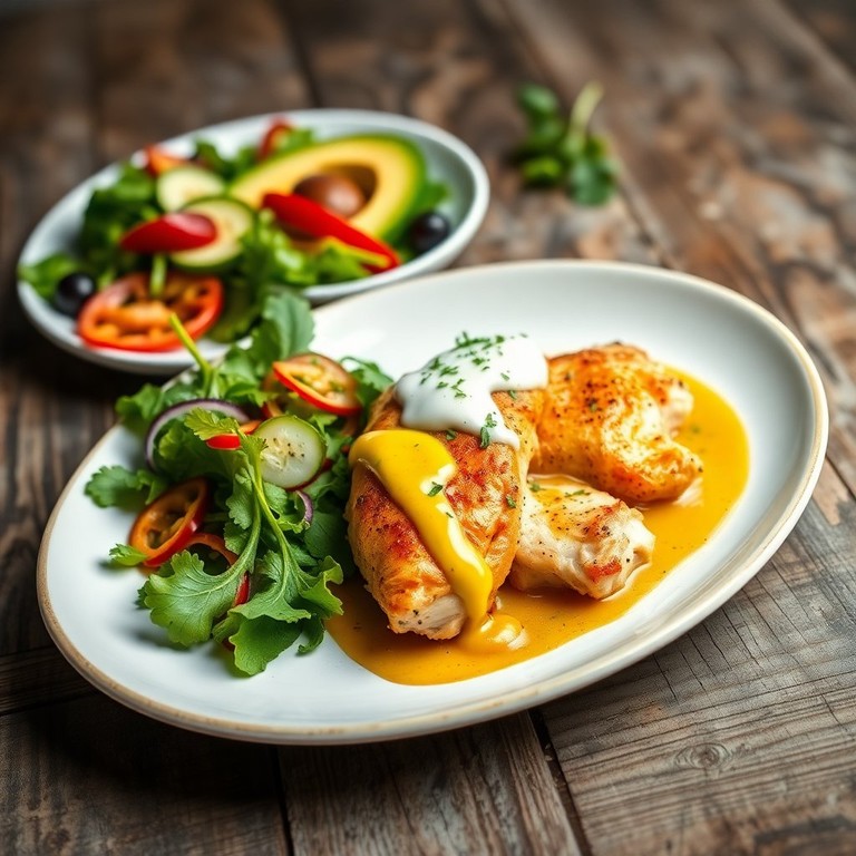 Pollo al Vino Blanco con Espuma de Mostaza y Ensalada Verde