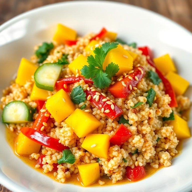 Ensalada de Quinoa y Mango con Aderezo de Jengibre y Sésamo
