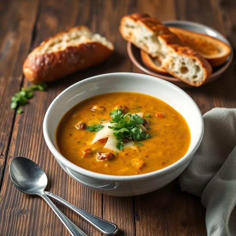 - Sopa cremosa de carne y verduras con toque de ajo y crema