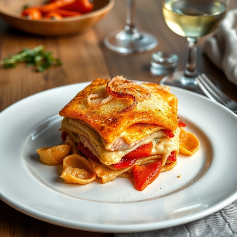 Lasaña de Salmón y Pimientos Rojos