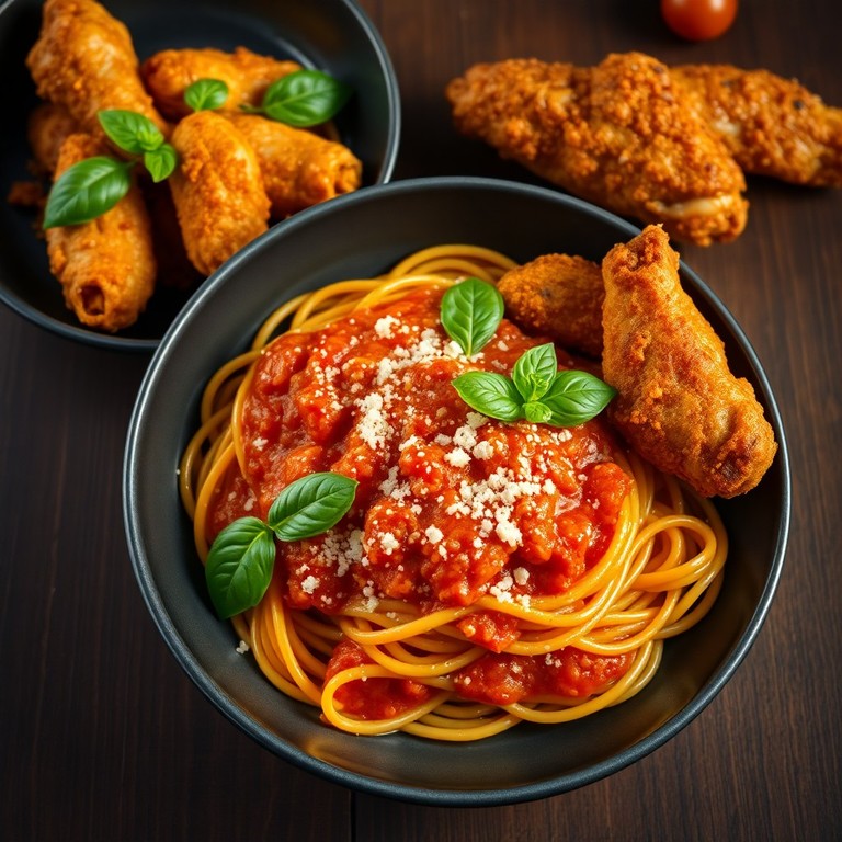 Spicy Tomato Pasta with Crispy Air-Fried Chicken Wings