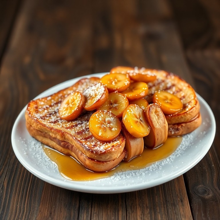 Tostadas Francesas con Plátano Caramelizado y Huevo Revuelto