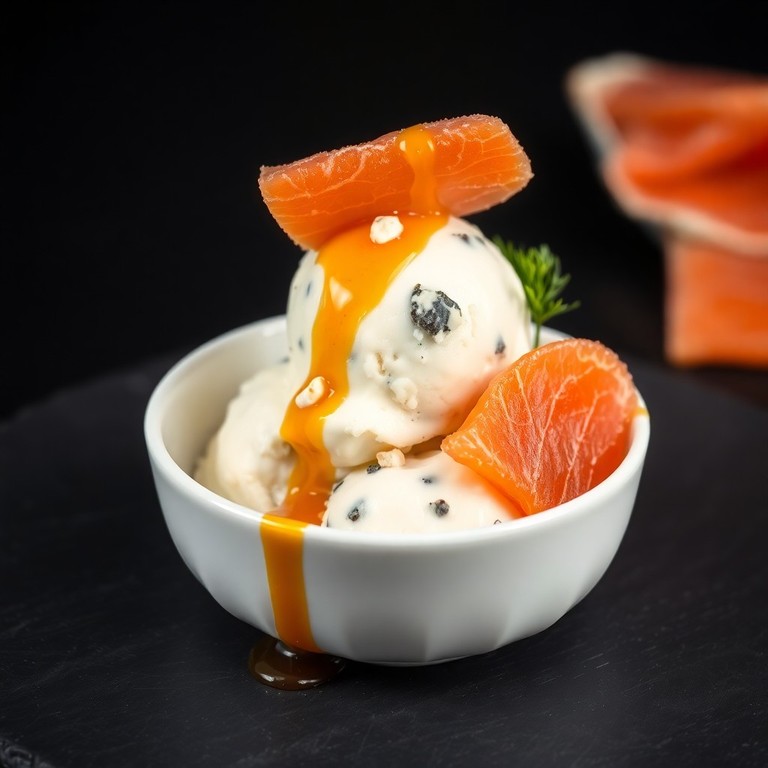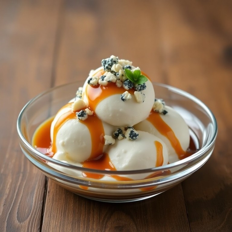 Vanilla Ice Cream with Blue Cheese and Fish Sauce Caramel Drizzle