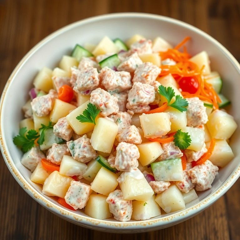 Нежный картофельный салат с тунцом и овощами