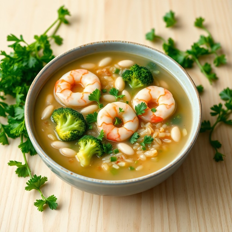 - Hearty Low-Sodium Shrimp and White Rice Broth Soup with Broccoli