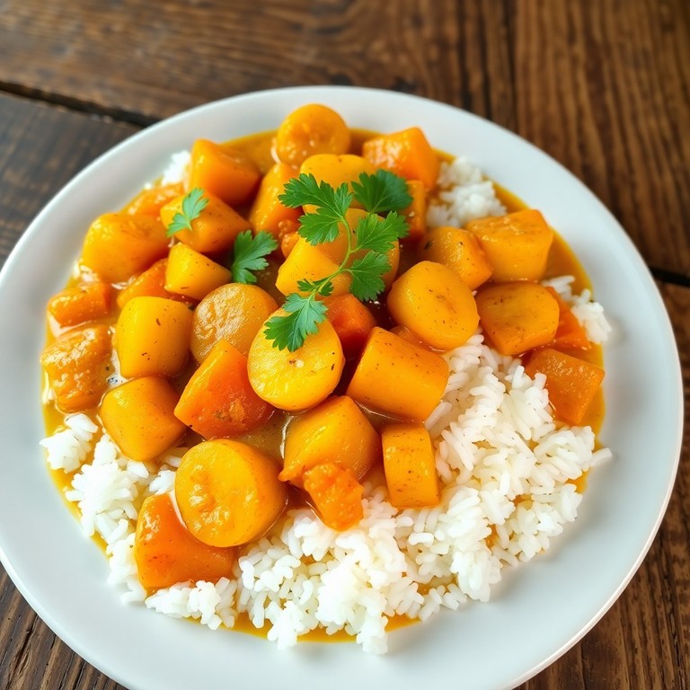 Indischer Kartoffel- und Bananen-Curry mit Reis