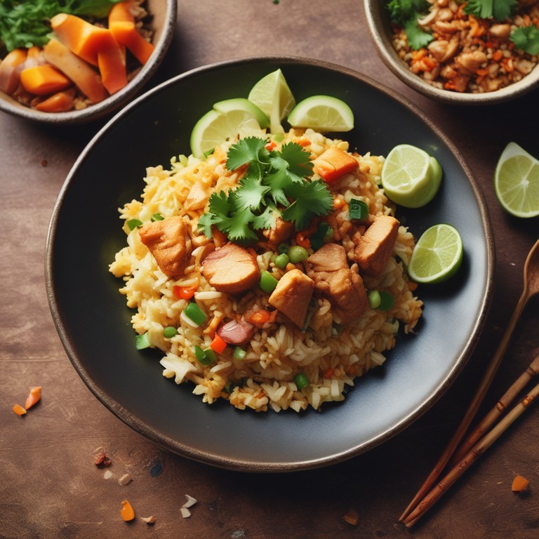 Javanese Fried Rice (Nasi Goreng Jawa) with Spicy Chicken and Vegetables