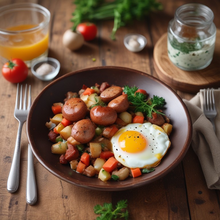 Spicy Pork Sausage and Potato Hash with Creamy Tomato Sauce