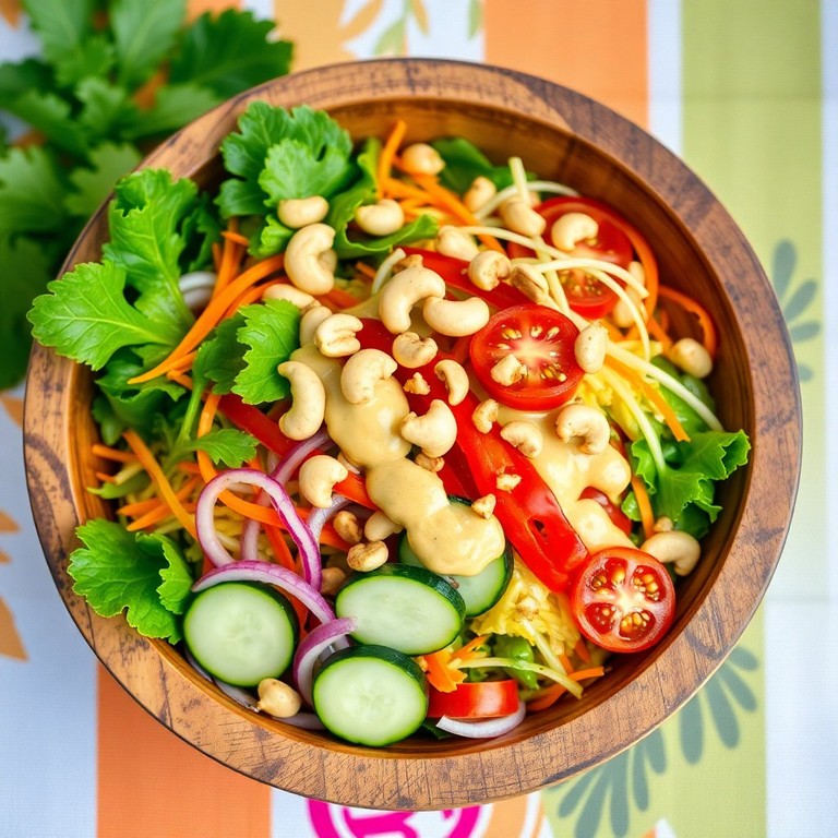 Spicy Indonesian Garden Salad with Cashew Curry Drizzle