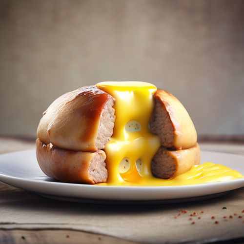 Sausage and Cheese Stuffed Sponge with Egg Sauce