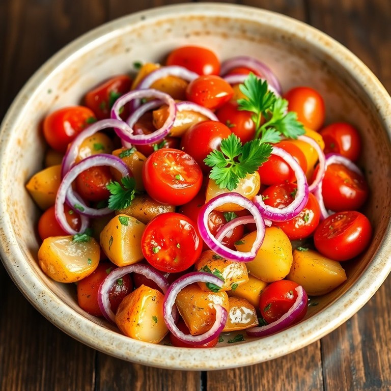 Mediterranean Tomato Onion Potato Salad with Zesty Lemon Dressing