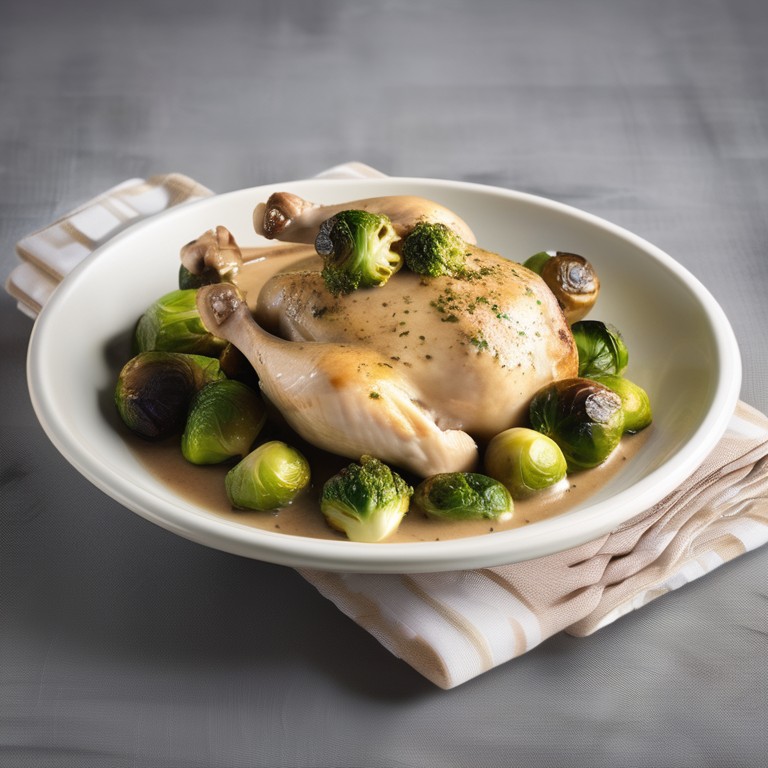 Poulet aux Choux de Bruxelles et Crème