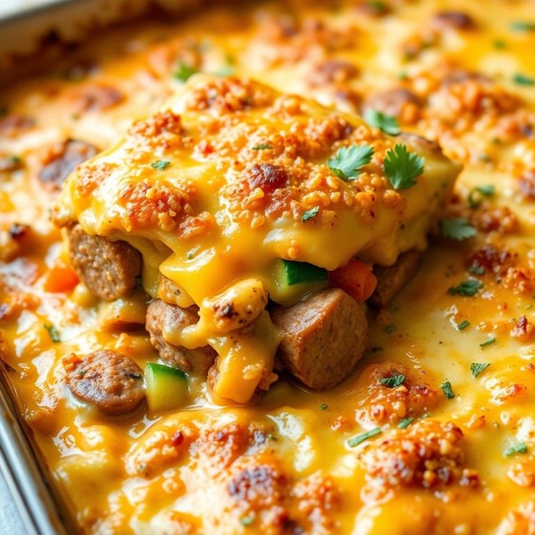 Cheesy Sausage and Veggie Bake with a Crunchy Topping