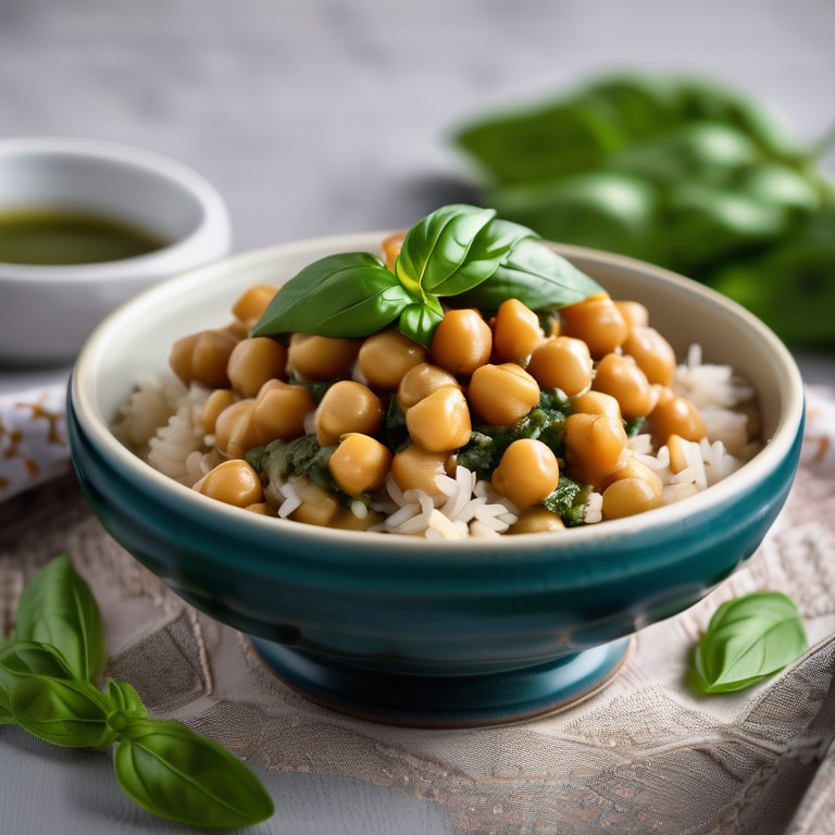 Pois Chiches et Riz à la Sauce au Basilic