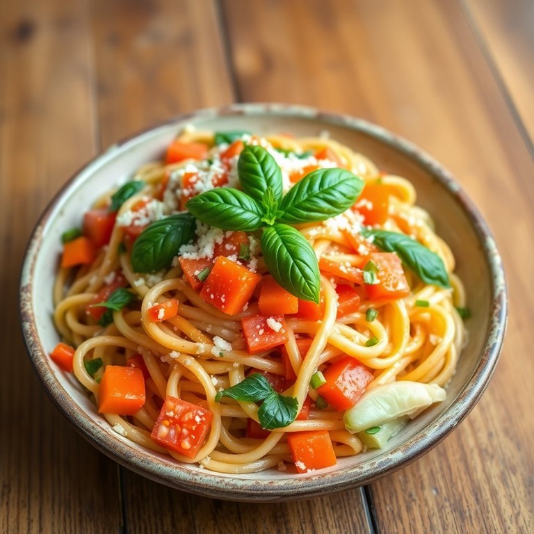 Pasta Primavera con Zanahorias y Repollo