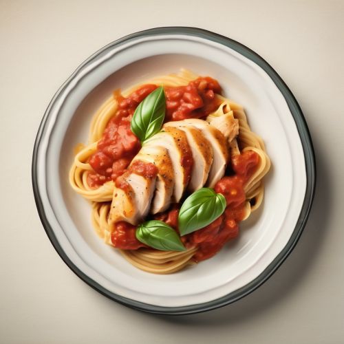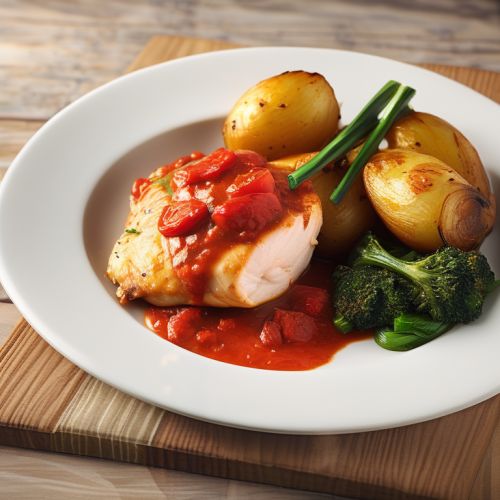 - Baked Chicken Breast with Roasted Potatoes and Tomato Onion Garlic Sauce