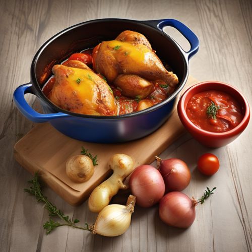 - Baked Chicken with Garlic Potatoes and Tomato-Onion Sauce