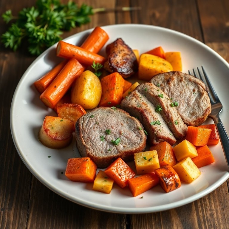 - Batatas e Cenouras Assadas com Filé Mignon Suíno