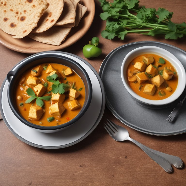 Spicy Paneer and Soybean Curry with Whole Wheat Roti