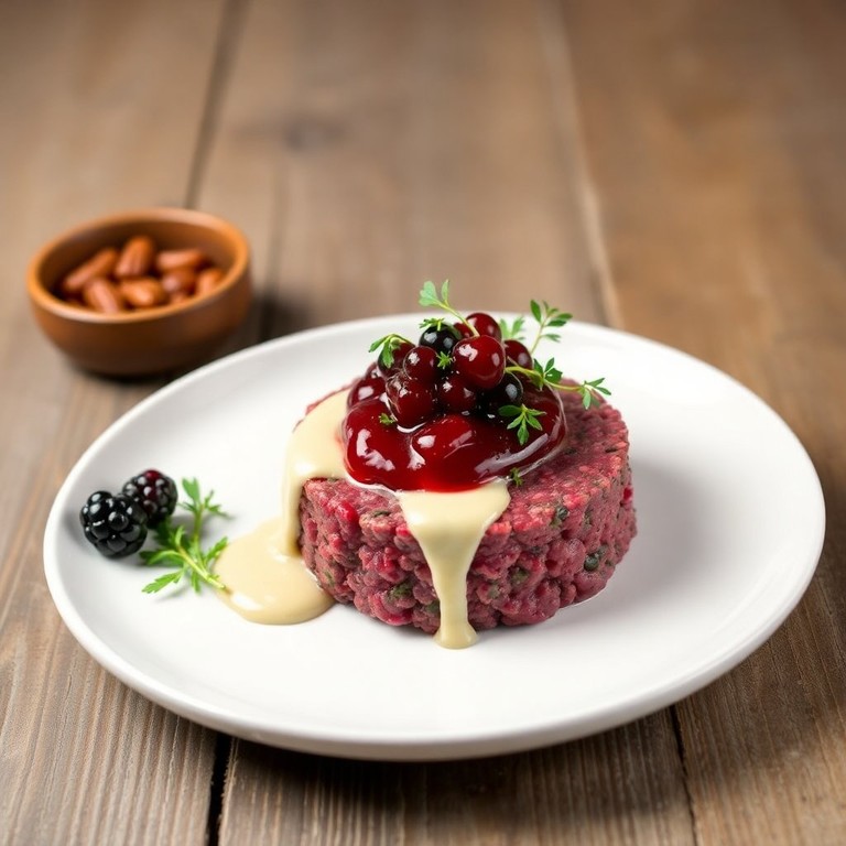 Wild Berry Infused Venison Tartare with Parmesan Sauce