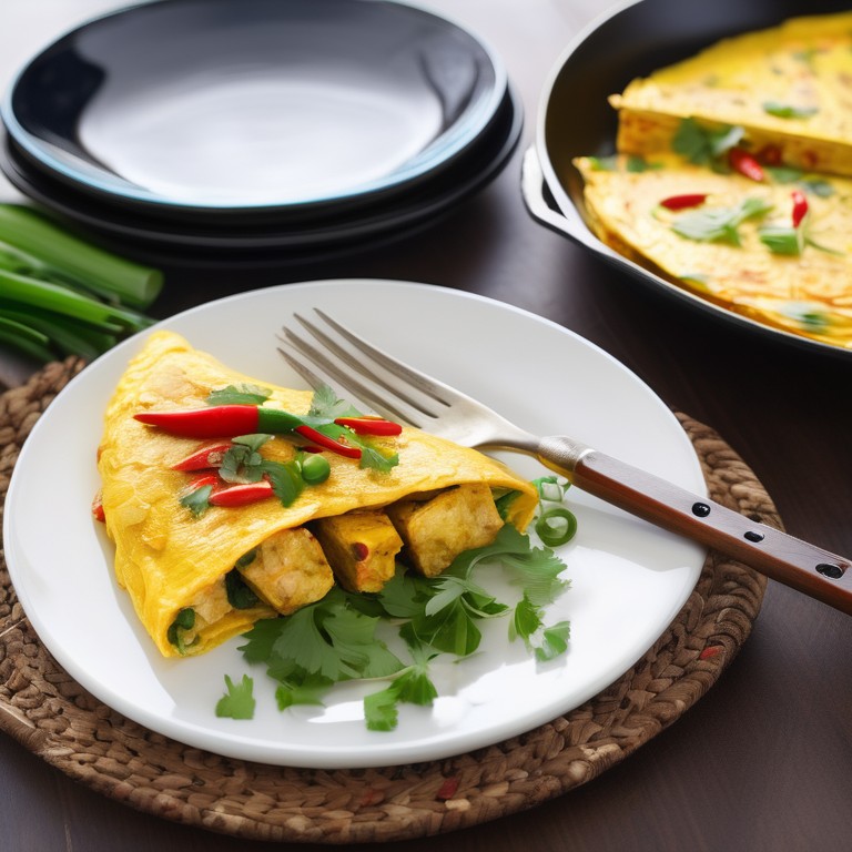 A flavorful and satisfying omelette made with tempeh, tofu, and eggs, seasoned with kecap and spicy chili.