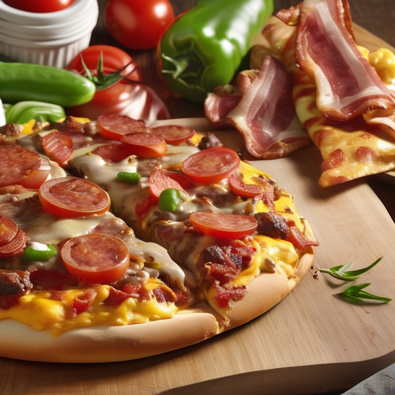 A mouth-watering fusion of a classic bacon cheeseburger and a traditional Pizza Margherita to create the Ultimate Bacon Cheeseburger Pizza.