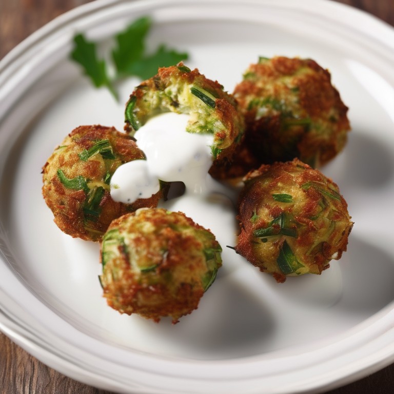 A delectable appetizer featuring crispy zucchini balls with a flavorful medley of herbs and spices.