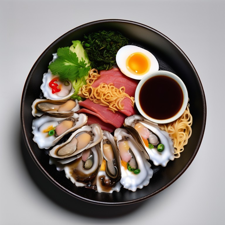 A savory and incredibly flavorful noodle bowl that combines the richness of Wagyu beef, the brininess of oysters, the unique taste of century egg, the comfort of instant noodles, the boldness of Thai fermented fish, and the depth of Vegemite.