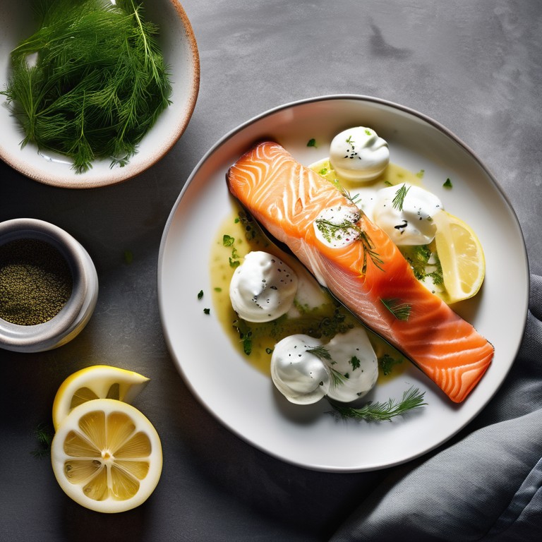 A delicate and flavorful dish featuring creamy burrata cheese paired with deliciously cooked salmon fillets.