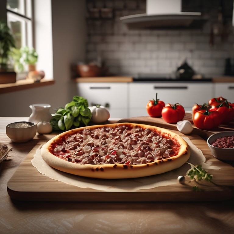 Une délicieuse recette de pizza maison garnie de viande hachée savoureuse et de haricots rouges. Parfaite pour les amateurs de pizza avec une touche créative et délicieuse.