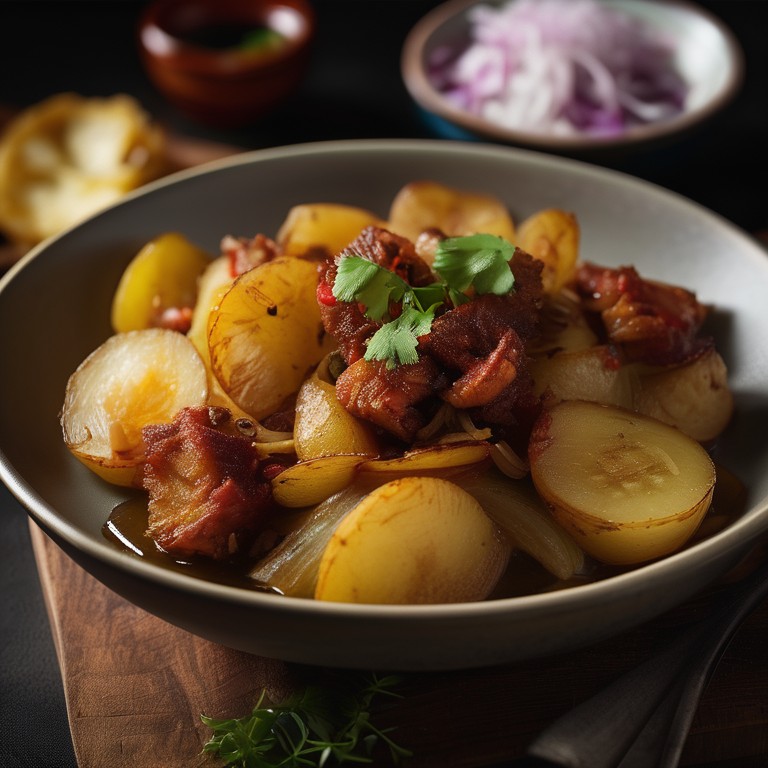 Papas con Cuero is a traditional Colombian dish made with potatoes and pork skin. It is a delicious and hearty meal that combines tender potatoes with crispy pork skin for a satisfying and flavorful experience.