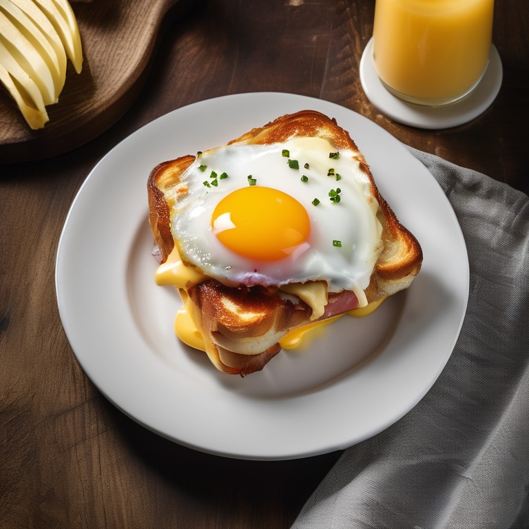 Le Croque Madame est une variation gourmande du classique Croque Monsieur, surmonté d'un œuf au plat pour un repas complet. Ce sandwich chaud français est composé de pain de mie beurré, garni de jambon et de fromage grillé, et couronné d'un œuf qui apporte une touche d’onctuosité. Un délice pour un déjeuner ou un dîner rapide mais raffiné.