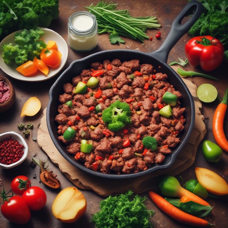 Ein köstliches, kalorienarmes Gericht mit Hackfleisch, Gemüse und Gewürzen