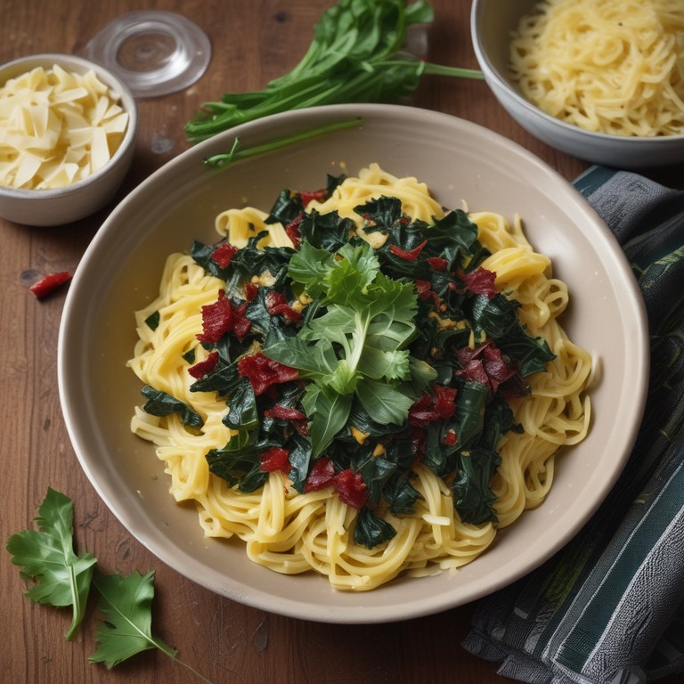 Ein köstliches Gericht mit frischem Mangold, Nudeln und Frühlingszwiebeln. Leicht zubereitet und voller Geschmack!