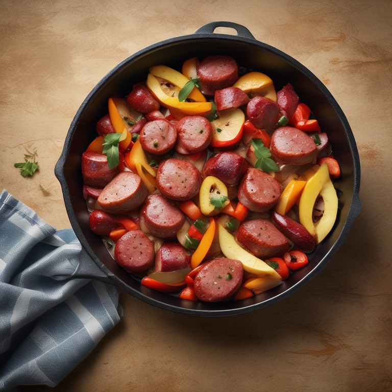 A delicious and easy one-pan meal featuring smoky turkey sausage with colorful veggies and flavorful seasonings.