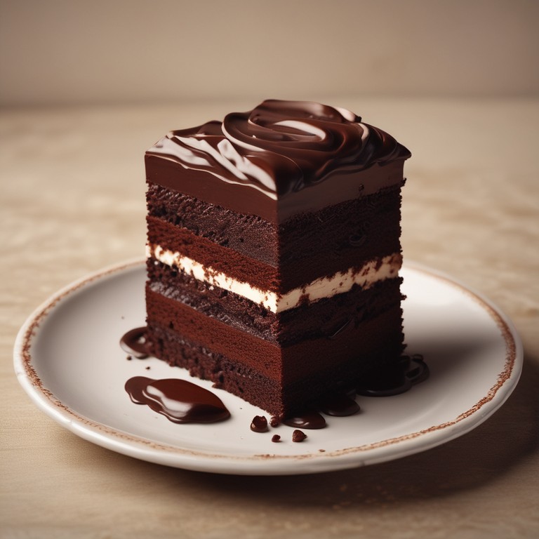 A rich and indulgent chocolate cake with a wave-like design on top, perfect for chocolate lovers.