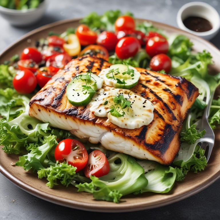 This recipe combines the light and flaky basa fish with a refreshing mixed salad for a healthy and satisfying meal. The fish is seasoned with a flavorful marinade and grilled to perfection, while the salad provides a crunchy and colorful contrast. With only 300 calories, this dish is perfect for a nutritious and delicious lunch or dinner option.