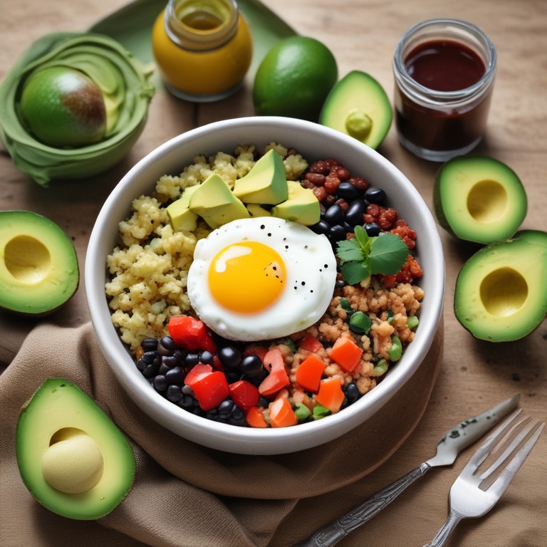 This breakfast bowl is a nutritious and delicious way to start your day. Packed with fiber from quinoa and black beans, as well as protein from eggs, this meal will keep you full and satisfied. The addition of fresh vegetables like bell peppers and avocado adds a burst of flavor and nutrients. Customize this bowl with your favorite toppings and enjoy a wholesome breakfast that fuels your body for the day ahead.