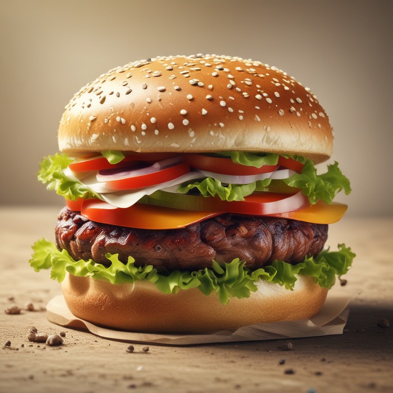 Ein klassischer Burger mit saftigem Rindfleisch, geschmolzenem Käse, frischem Gemüse und würzigen Saucen. Perfekt für ein entspanntes Barbecue oder als schnelles Abendessen.