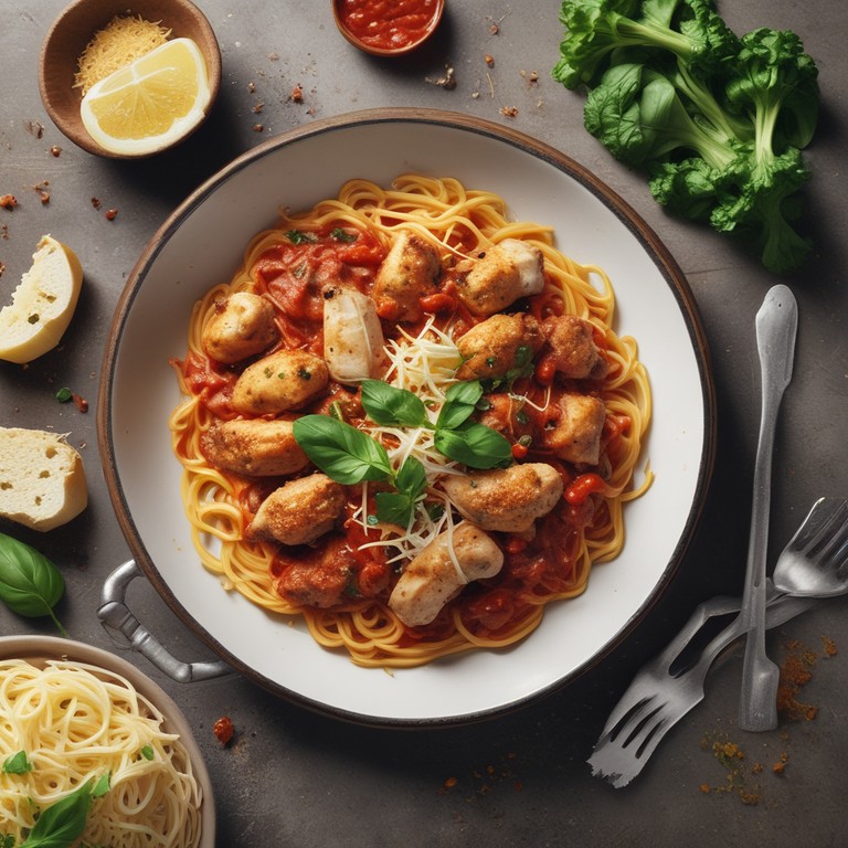 A delicious and comforting dish that combines tender chicken, flavorful marinara sauce, and al dente spaghetti, topped with Parmesan cheese and fresh herbs. This Marinara Chicken Spaghetti is a perfect family meal that is easy to make and full of Italian flavors.