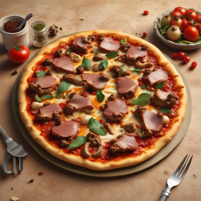 This Spicy Mutton Pizza is a flavorful twist on the classic pizza, featuring tender mutton slices seasoned with aromatic spices, fresh vegetables, and melted cheese on a crispy crust. The combination of cumin, paprika, and jalapenos adds a spicy kick to this delicious pizza. Perfect for spice lovers and those looking to try a unique pizza flavor!