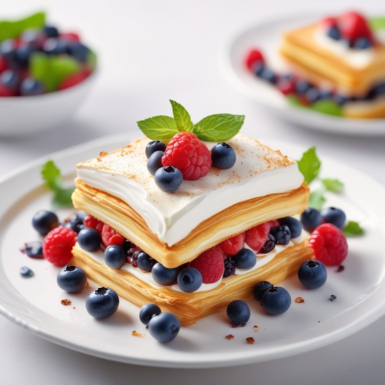 This Berry Bliss Mille-Feuille is a delightful twist on the classic French pastry, featuring layers of flaky puff pastry, luscious whipped cream, and a vibrant berry compote. Perfect for any occasion, this dessert is both elegant and delicious, showcasing the natural sweetness of fresh berries.