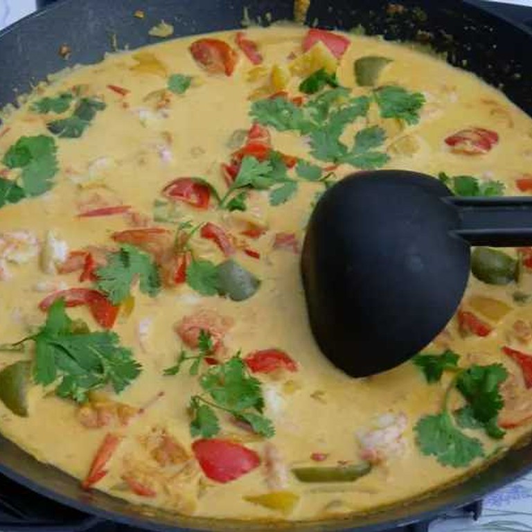 Curry de crevettes et poivrons au lait de coco