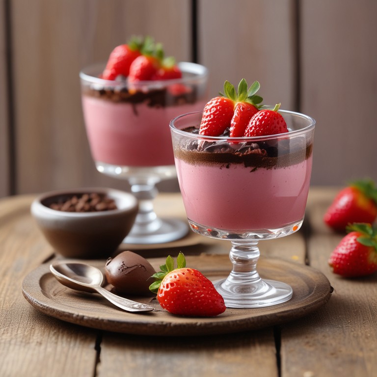 Uma mousse leve e cremosa de morango com chocolate, perfeita para a sobremesa em qualquer ocasião. A combinação do chocolate meio amargo com o frescor dos morangos cria um sabor irresistível.